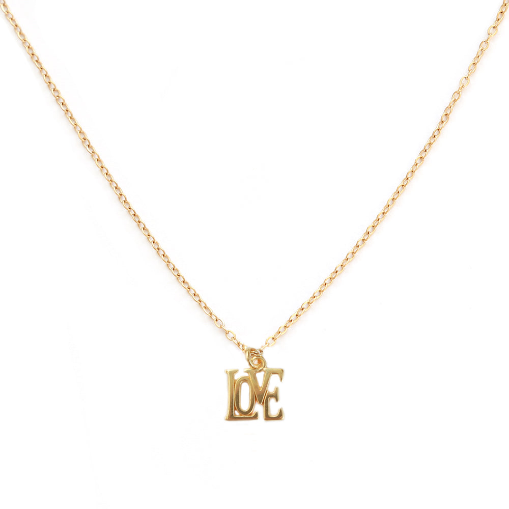Schöne goldene Halskette mit dem Wort LOVE. Material: Edelstahl Länge: 40 cm und 4 cm Verlängerungskette