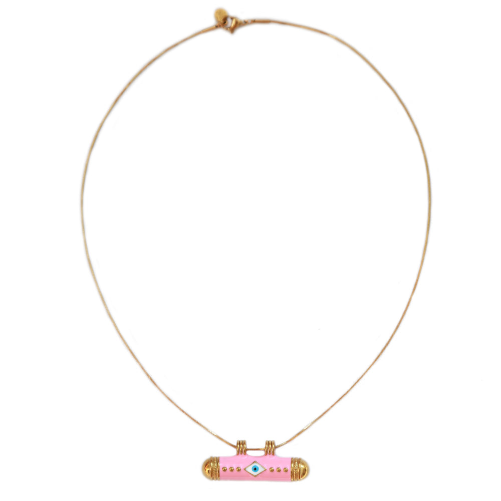 Schöne Goldkette mit einem wunderschönen rosa Anhänger mit bösem Blick.