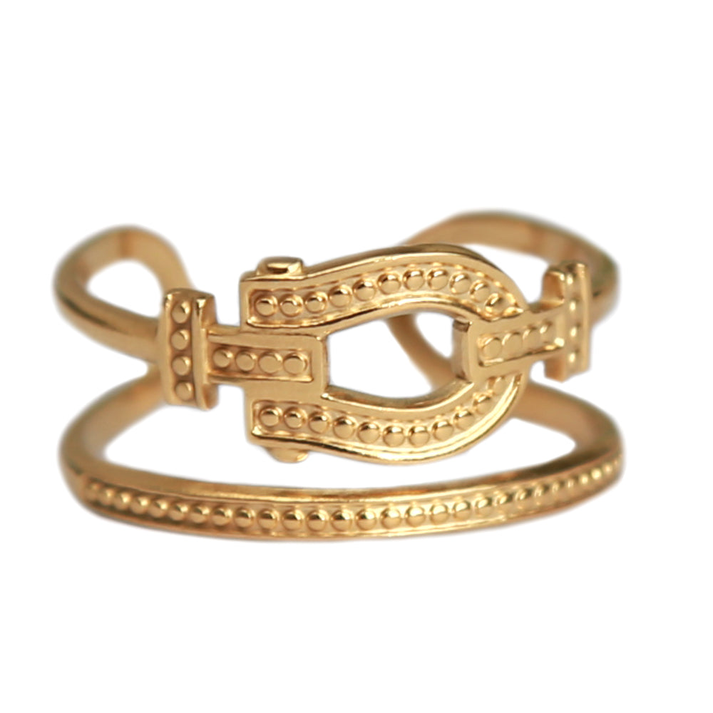 ¡Precioso anillo con hebilla dorada! Talla: única, ajustableMaterial: acero inoxidable