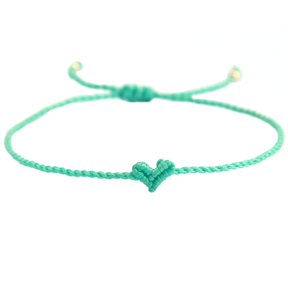 Delicada tobillera de turquesa con un pequeño corazón. Fácil de ajustar a la talla.