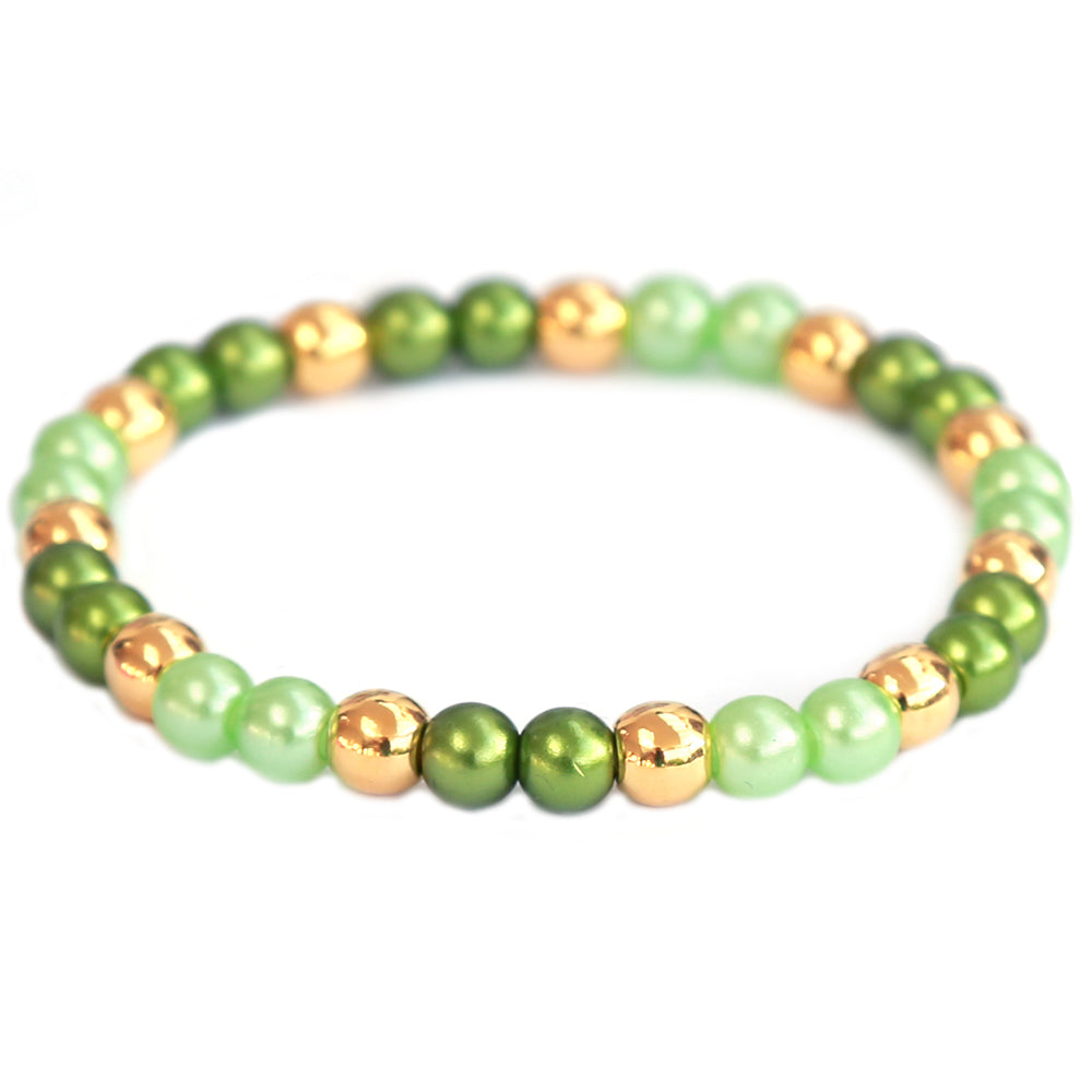 Un joli bracelet fait main composé de perles vertes et dorées variées ! Il est réalisé avec un élastique.
