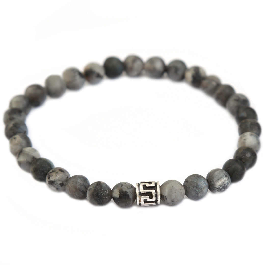 Joli bracelet pour homme avec des perles en pierres naturelles et une breloque en argent !
