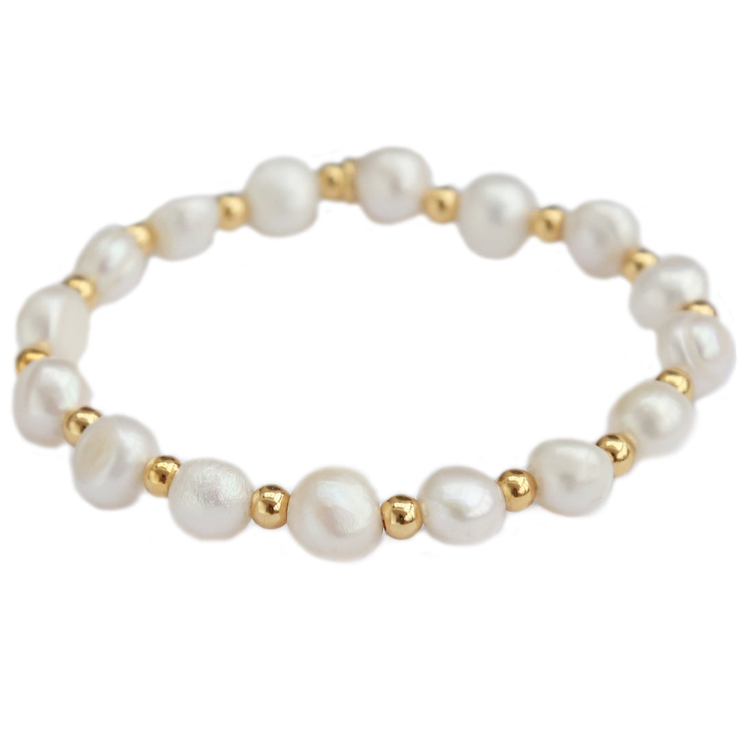 Joli bracelet de perles alternées de perles dorées.Matière : perle et acier inoxydable