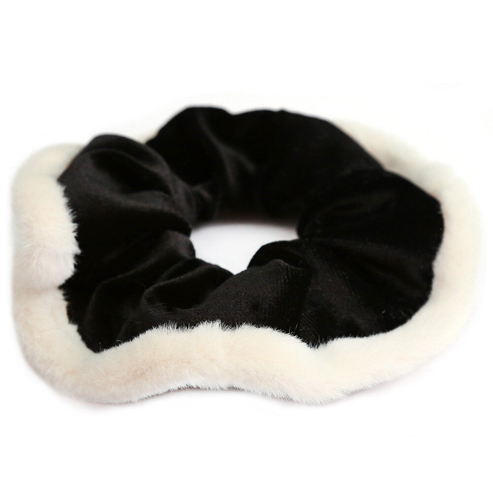 Magnifique chouchou en velours noir bordé de fausse fourrure blanche. Enroulez-le autour d'une queue de cheval haute...