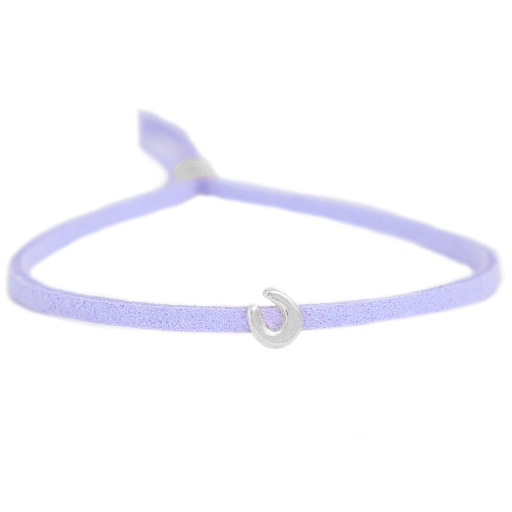 Let’s get lucky! Dit mooie lila suède armbandje heeft een klein silver plated hoefijzertje voor GOOD LUCK!