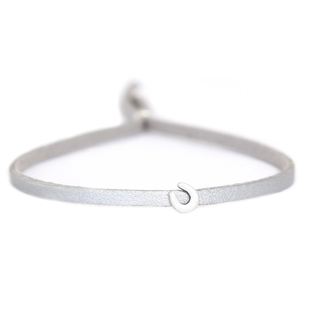 Let’s get lucky! Dit mooie zilveren suède armbandje heeft een klein silver plated hoefijzertje voor GOOD LUCK!