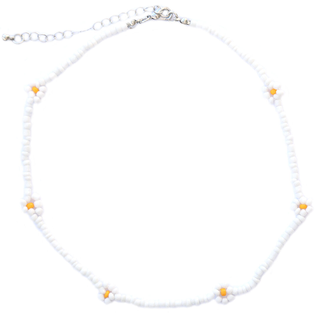 Oopsy daisy ❀ Super cute choker kettinkje van witte kraaltjes met madeliefjes.