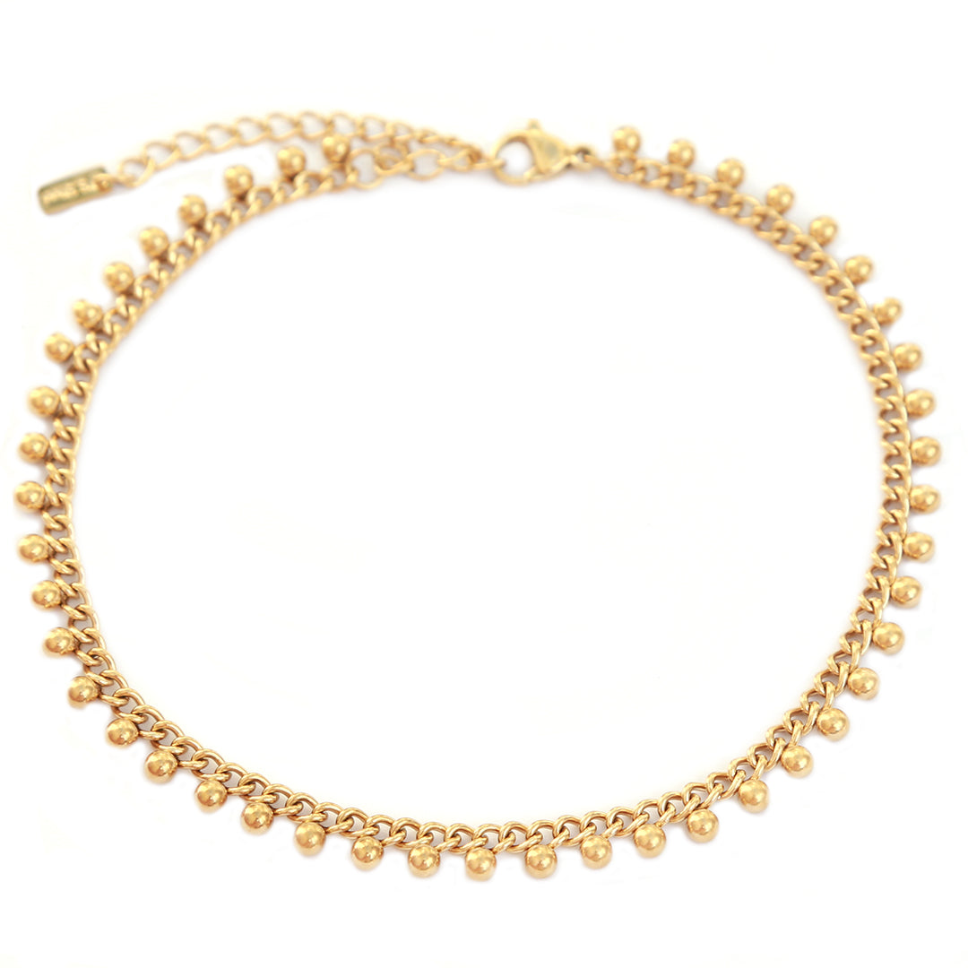 Leuk gouden chain enkelbandje met gouden balletjes.