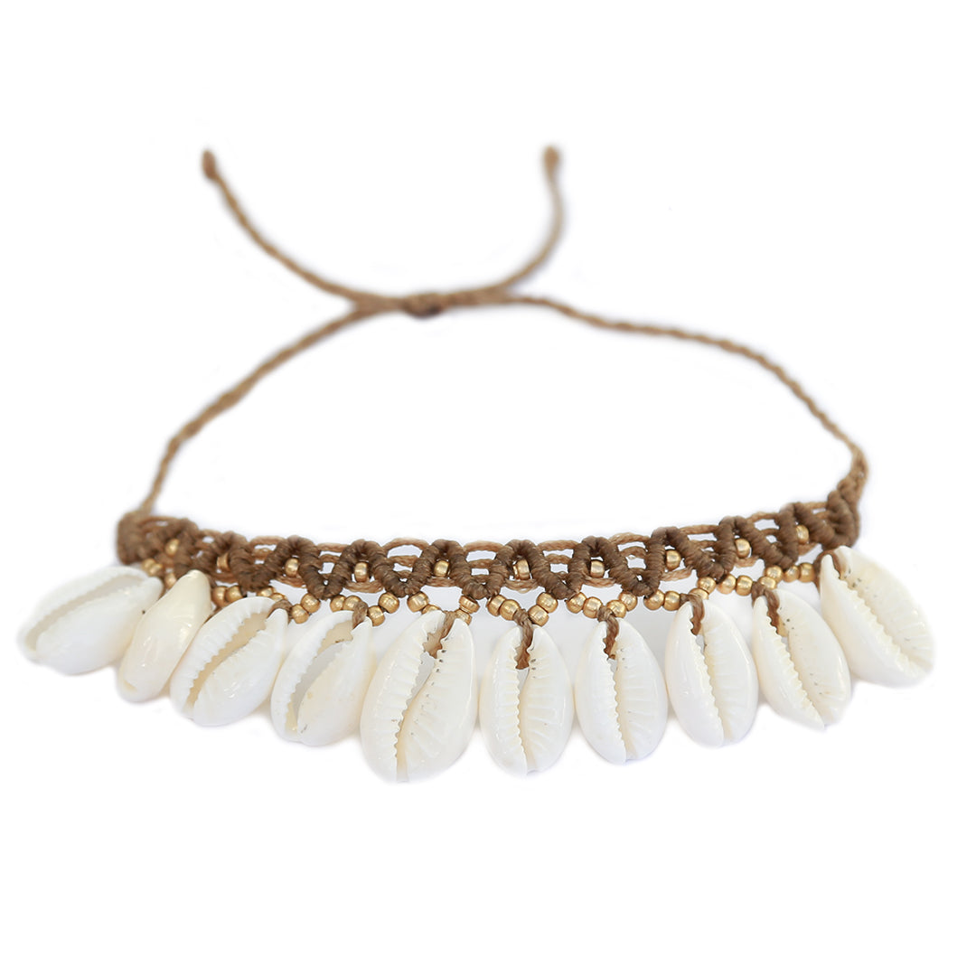 Leuk boho style enkelbandje met schelpjes. Je kunt het enkelbandje makkelijk op maat schuiven.