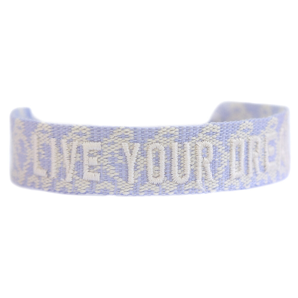 Mooi pastelkleurig geweven armbandje met in het wit de tekst 'Live your dream'.Dit geborduurde armbandje is gemakkelijk...