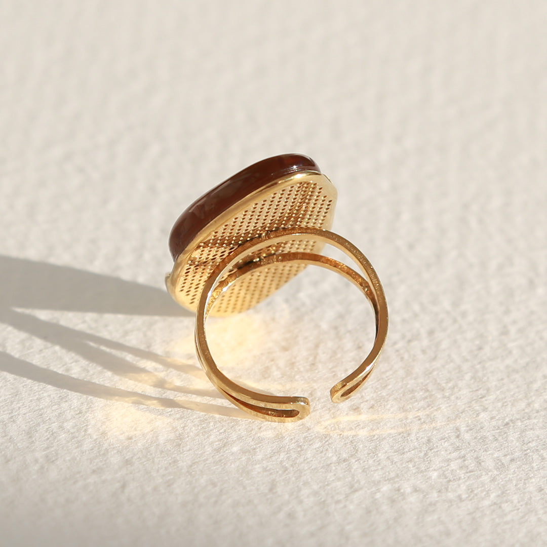 Een mooie gouden statement ring met een steen. Je kunt de ring zelf op maat buigen.