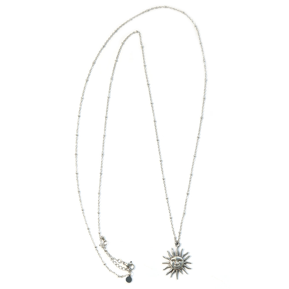Leuke zilveren lange ketting met een zonnebedeltje.