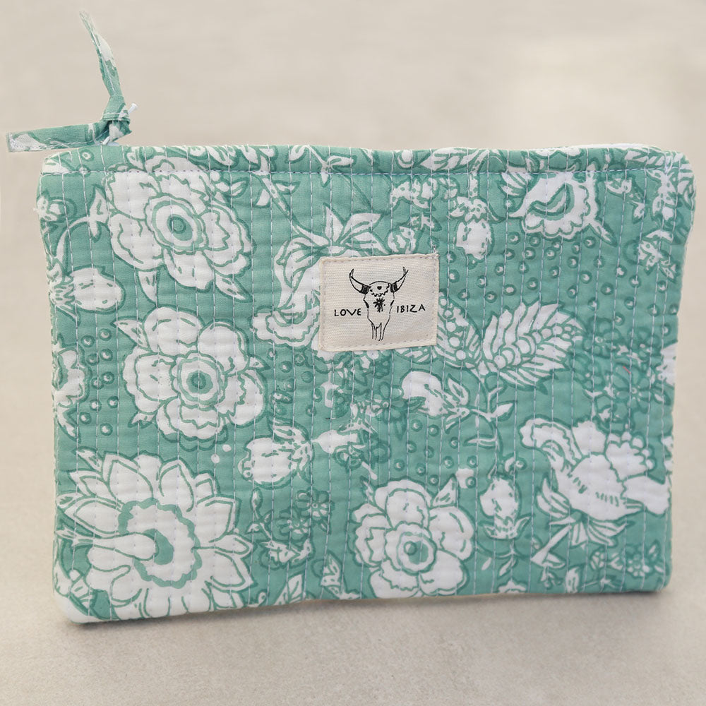Kleurrijke blockprint make-up pouch. Super handig om te gebruiken als make-up tasje maar ook om wat kleinere spullen in te doen wanneer je een grote tas gebruikt.