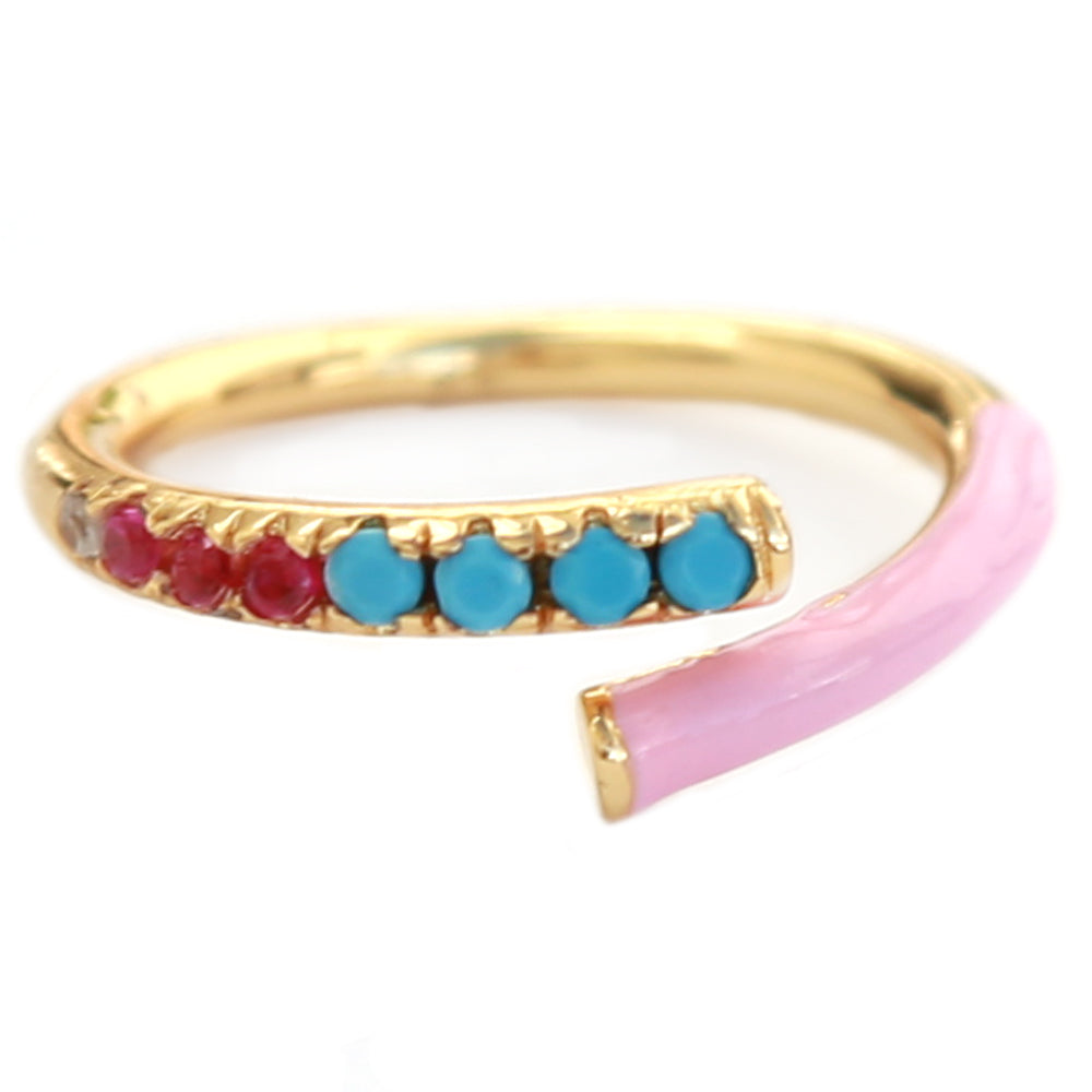 Leuke gouden ring met gekleurde details. De ring is verstelbaar.