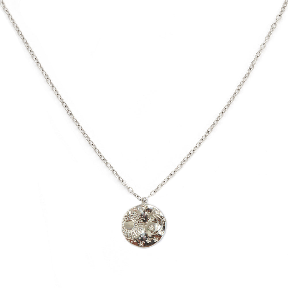 Leuke zilveren ketting met een zon maan en sterren opdruk.