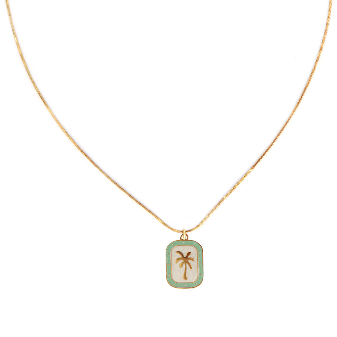 Nice gold chain with a mint colored charm and a palm tree.Length: 45 cmMaterial: stainless steel