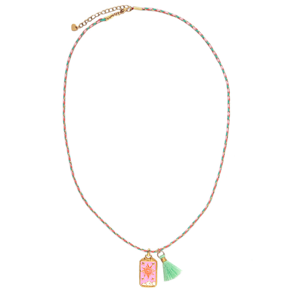 Nice necklace made of colored cord with a gold charm and a tassel.