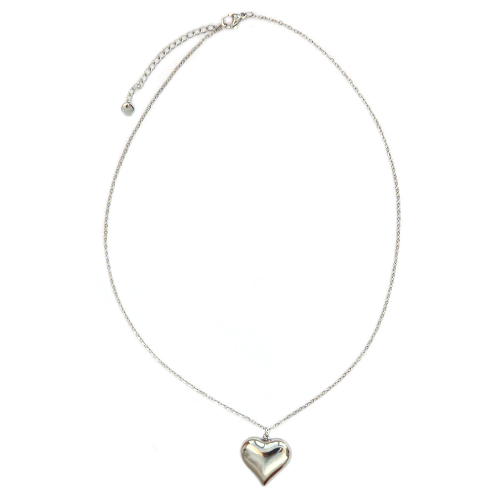 Cute silver necklace with a heart charm.Material: Stainless steelLength: 40 cm + 5 cm extension chain